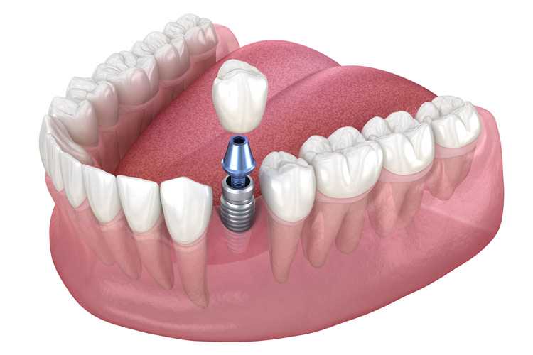 An implant and a crown can be used to replace a single missing tooth. Single dental implants look, feel and act as natural teeth.
